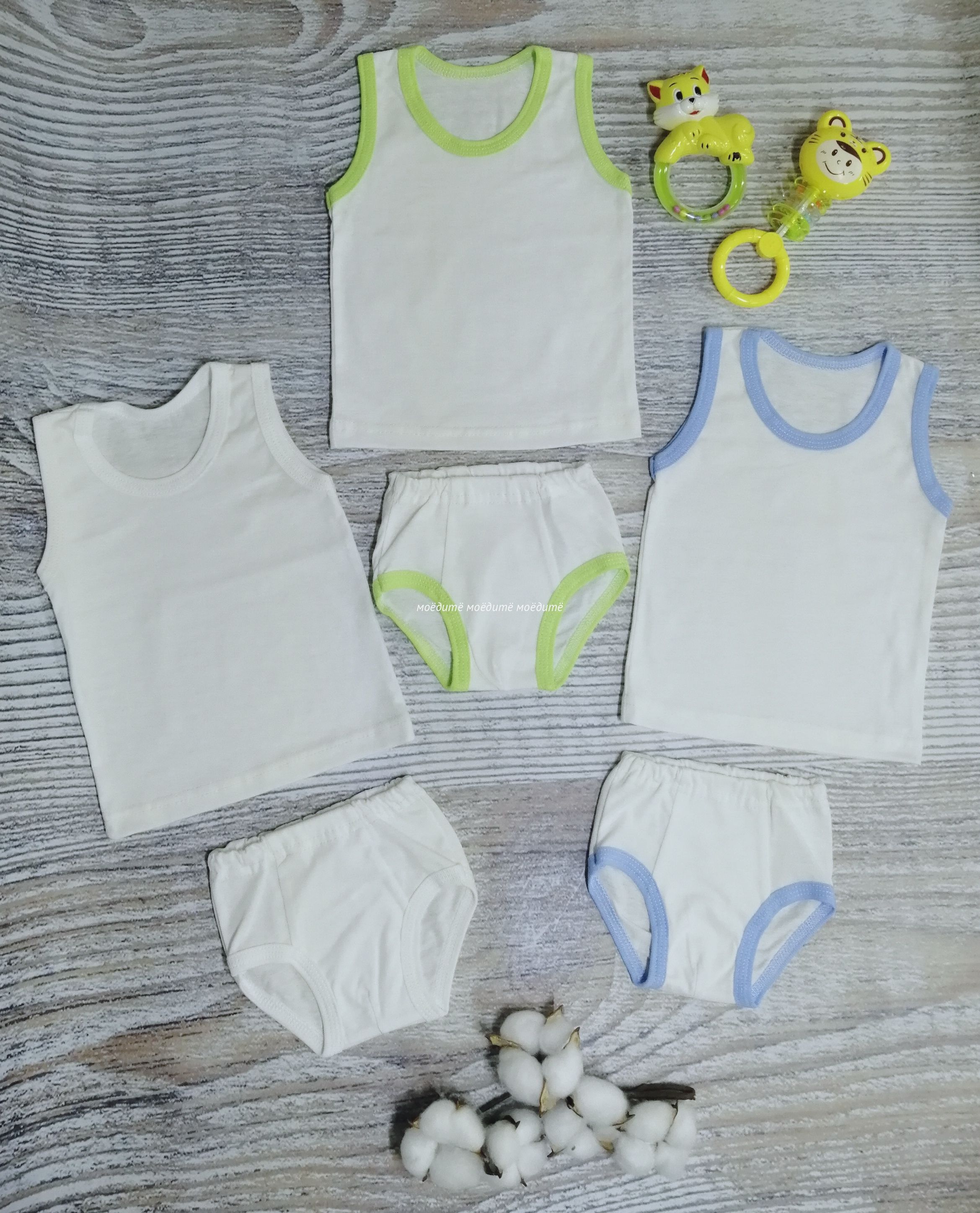 Комплект состоит из трусиков и маечки.